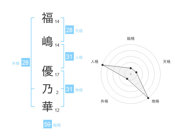 福嶋 優乃華さんの地格は31画の5点!