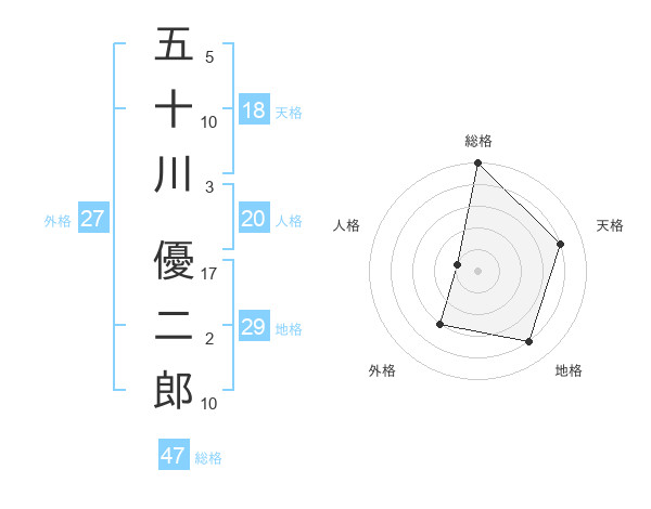 五十川 優二郎さんを姓名の画数から五運を鑑定