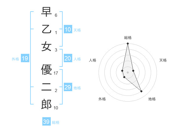 早乙女 優二郎さんを姓名の画数から五運を鑑定