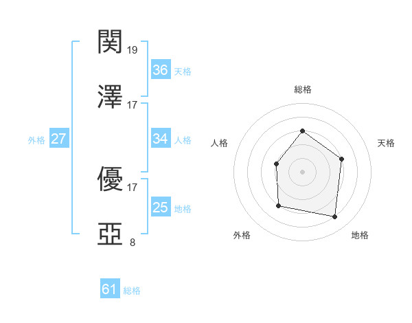 関澤 優亞さんを姓名の画数から五運を鑑定