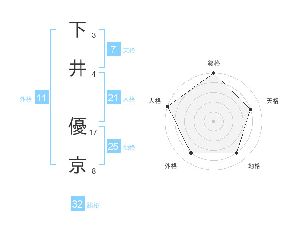 下井 優京さんの総格は32画の5点!