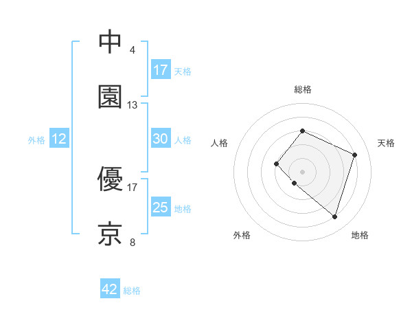 中園 優京さんの天格は17画の4点!