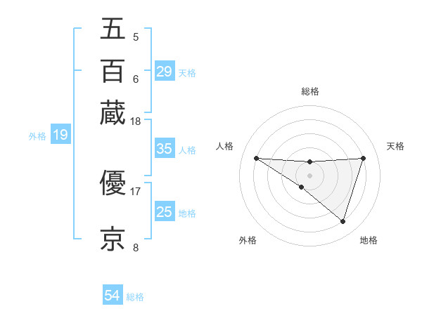 五百蔵 優京さんの総格は54画の1点!