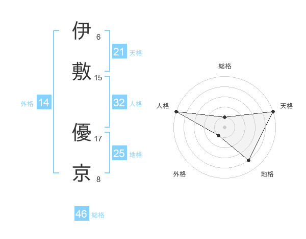 伊敷 優京さんを姓名の画数から五運を鑑定