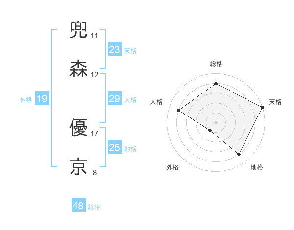 兜森 優京さんの人格は29画の4点!