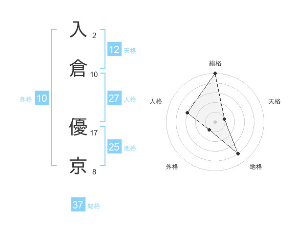 入倉 優京さんの総格は37画の5点!