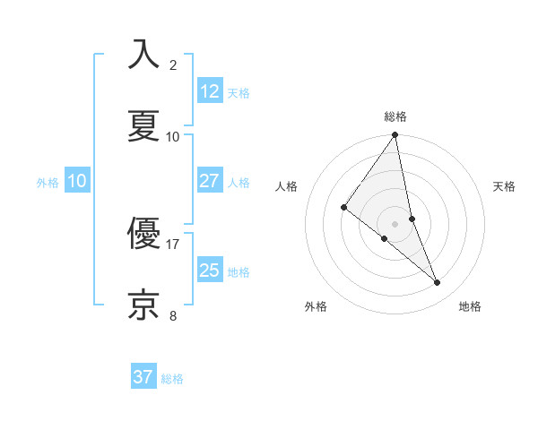 入夏 優京さんの天格は12画の1点!