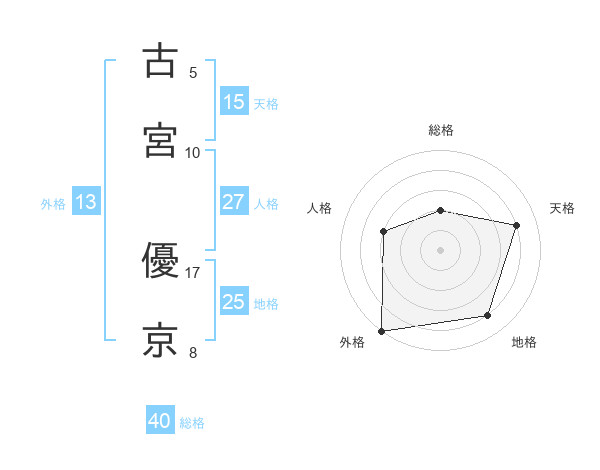 古宮 優京さんの天格は15画の4点!