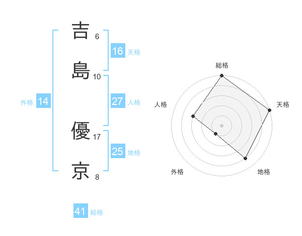 吉島 優京さんの天格は16画の5点!