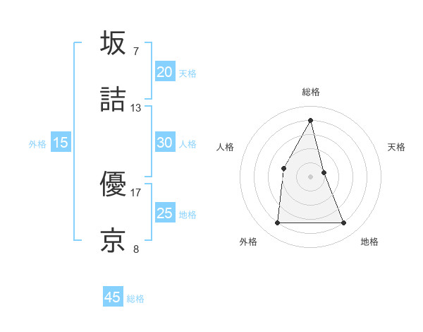坂詰 優京さんの総格は45画の4点!