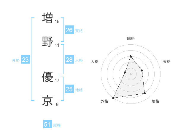 増野 優京さんの総格は51画の3点!