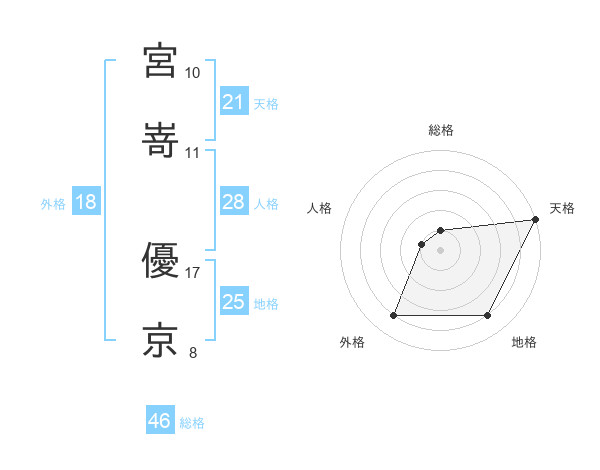 宮嵜 優京さんの天格は21画の5点!