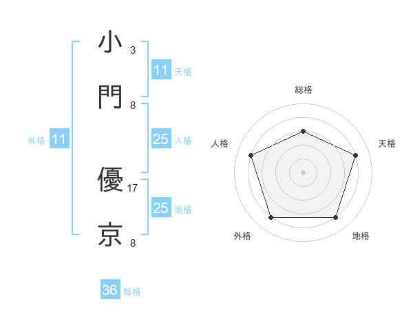 小門 優京さんの地格は25画の4点!