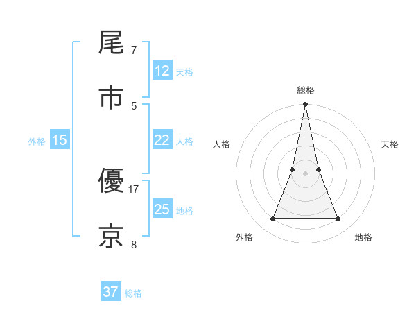 尾市 優京さんの総格は37画の5点!