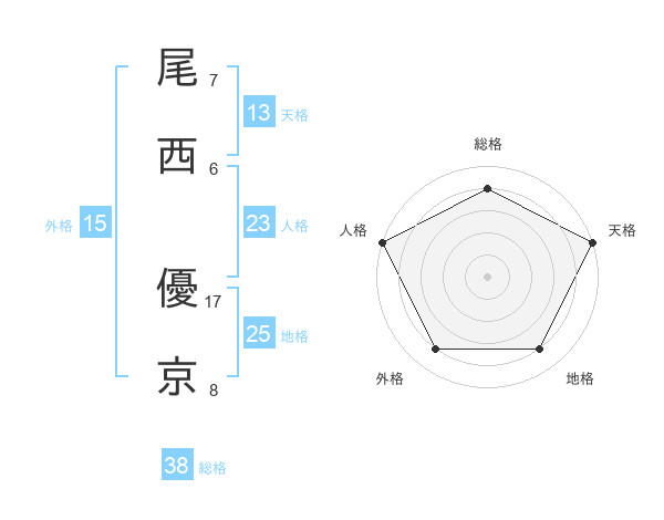 尾西 優京さんの天格は13画の5点!