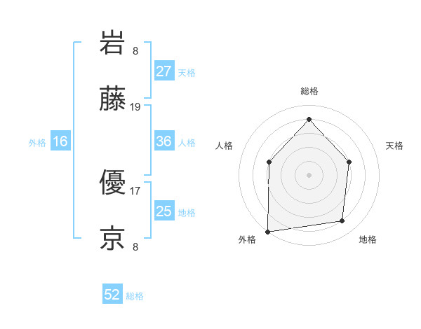 岩藤 優京さんの総格は52画の4点!