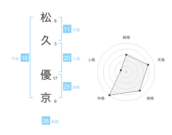 松久 優京さんの天格は11画の4点!