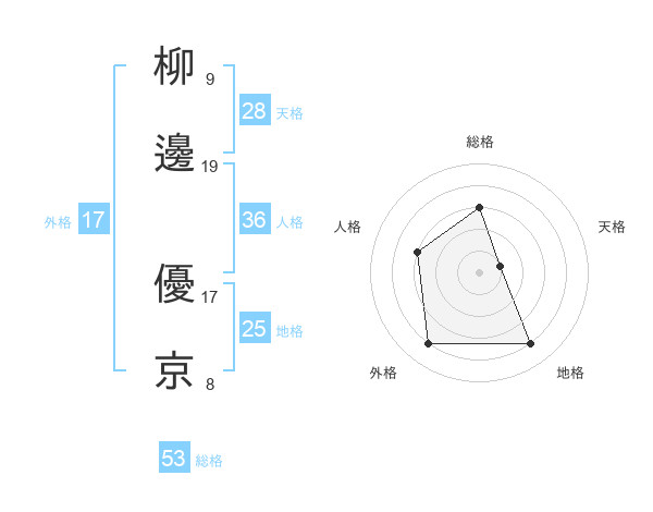 柳邊 優京さんを姓名の画数から五運を鑑定