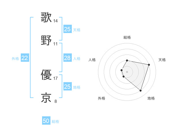 歌野 優京さんの天格は25画の4点!