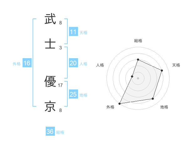 武士 優京さんの天格は11画の4点!