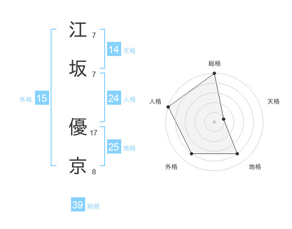 江坂 優京さんの総格は39画の5点!