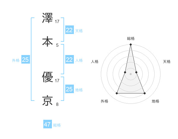 澤本 優京さんの総格は47画の5点!