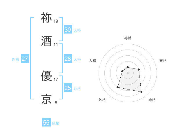 祢酒 優京さんの外格は27画の3点!