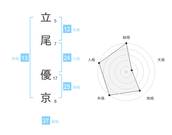 立尾 優京さんの総格は37画の5点!