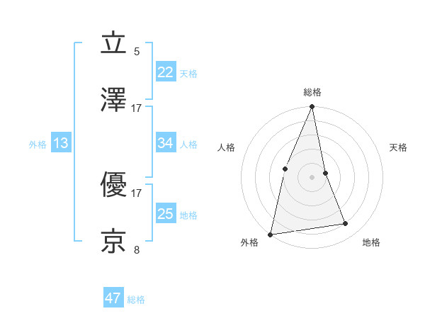 立澤 優京さんの総格は47画の5点!
