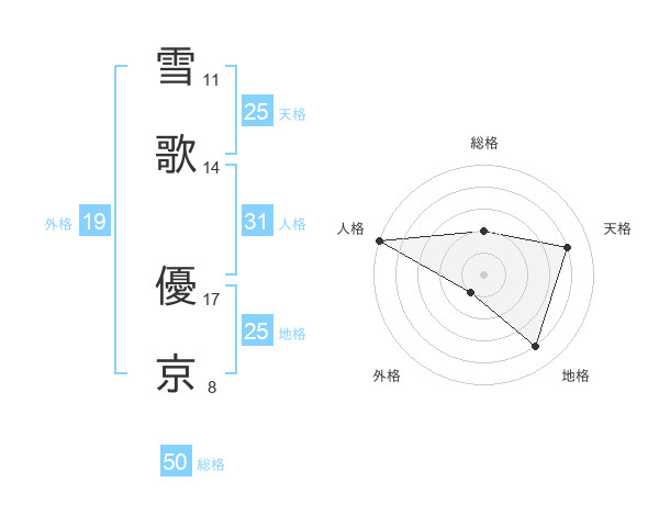 雪歌 優京さんの天格は25画の4点!