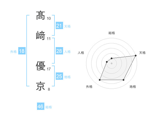 髙﨑 優京さんを姓名の画数から五運を鑑定