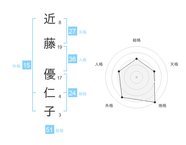 近藤 優仁子さんの総格は51画の3点!