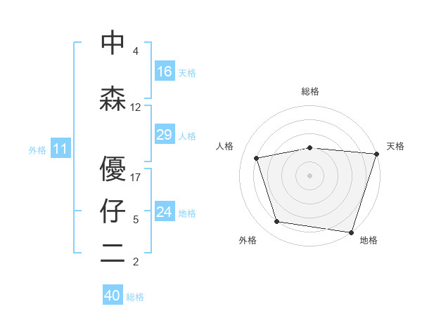 中森 優仔二さんを姓名の画数から五運を鑑定