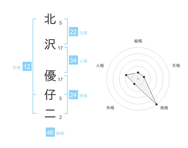 北沢 優仔二さんを姓名の画数から五運を鑑定