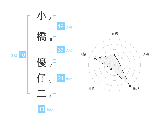 小橋 優仔二さんを姓名の画数から五運を鑑定