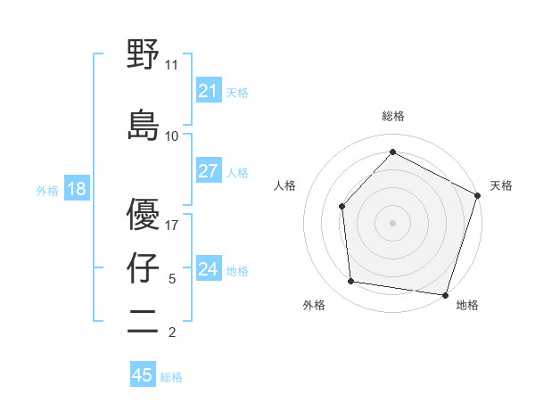 野島 優仔二さんの天格は21画の5点