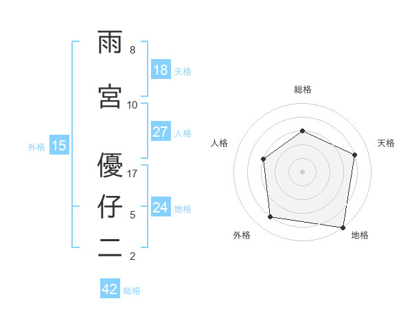 雨宮 優仔二さんを姓名の画数から五運を鑑定