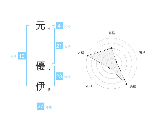 元 優伊さんを姓名の画数から五運を鑑定