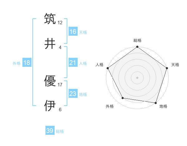 筑井 優伊さんを姓名の画数から五運を鑑定