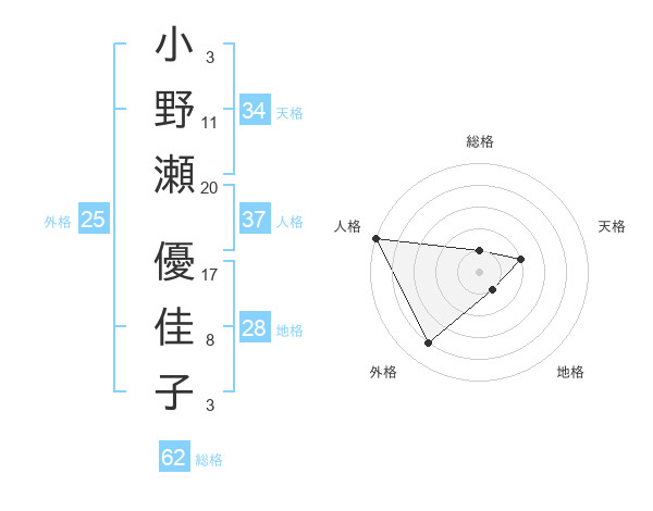 小野瀬 優佳子さんを姓名の画数から五運を鑑定
