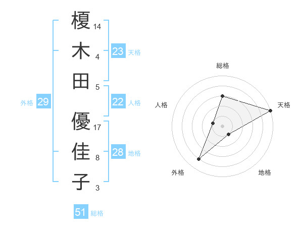 榎木田 優佳子さんを姓名の画数から五運を鑑定