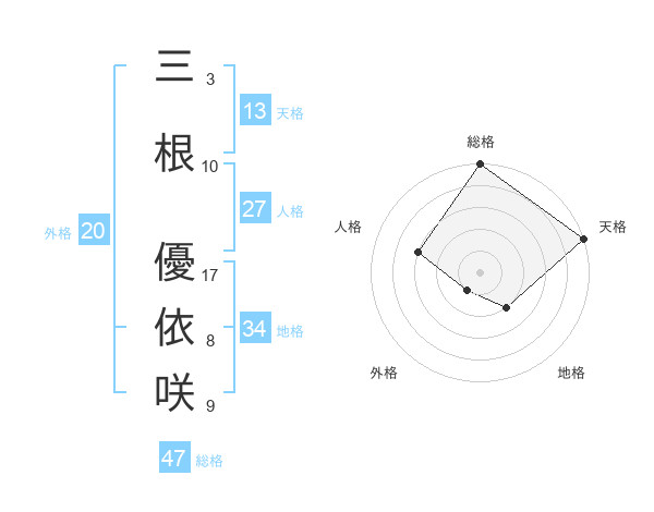 三根 優依咲さんの天格は13画の5点!