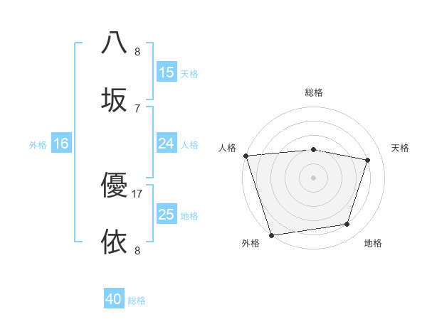 八坂 優依さんの天格は15画の4点!