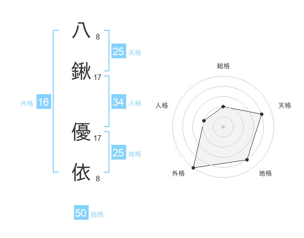 八鍬 優依さんの天格は25画の4点!