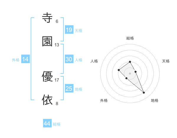 寺園 優依さんの総格は44画の2点!
