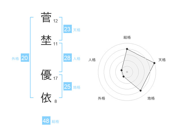 菅埜 優依さんの天格は23画の5点!