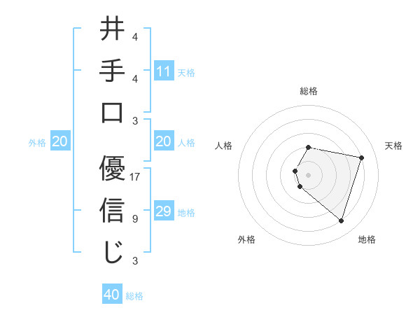 井手口 優信じさんを姓名の画数から五運を鑑定