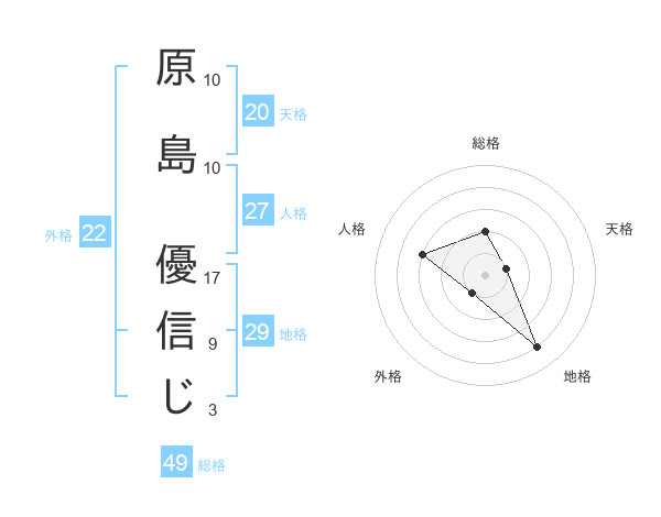 原島 優信じさんの総格は49画の2点!