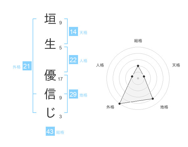 垣生 優信じさんを姓名の画数から五運を鑑定