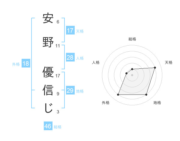 安野 優信じさんの総格は46画の1点!